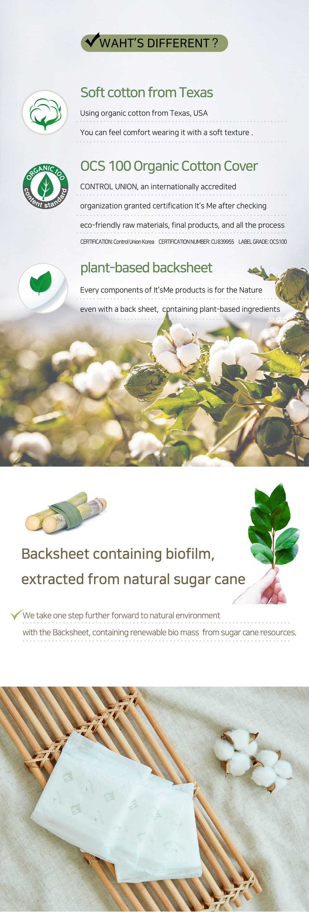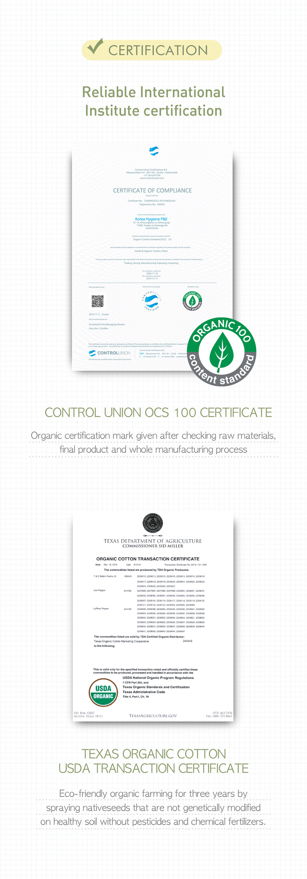 Certified by USDA. Slim type absorbing